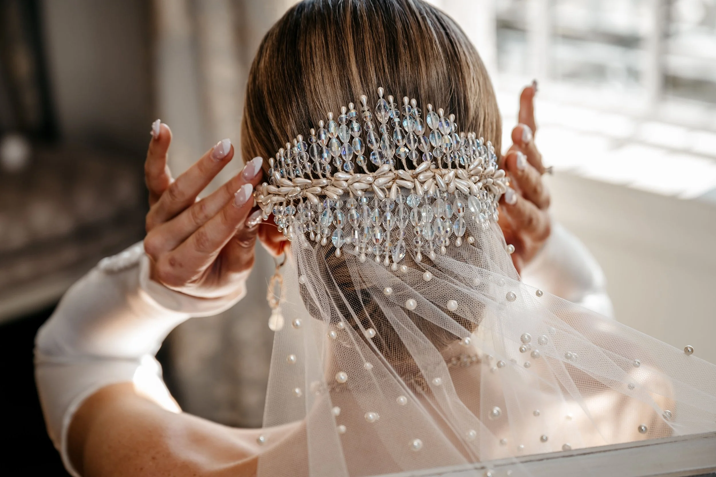 This bride restyled her mom’s ‘90s headpiece and veil into modern bridal accessories for her wedding day.