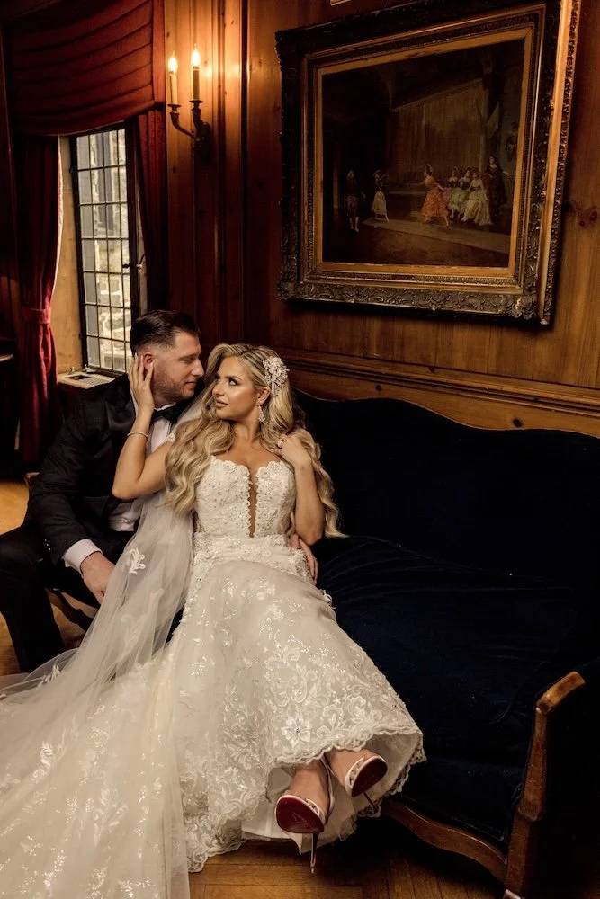 VENUE / Pleasantdale Chateau VINTAGE HEADPIECE & VEIL REPURPOSE/ Headpiece.com HAIR / Ashley Raibick MUA / Makeup By Kandice FLOWERS / Debbies Designs GOWN / Eve of My Lady VIDEOGRAPHER / Victoria Lovaglio