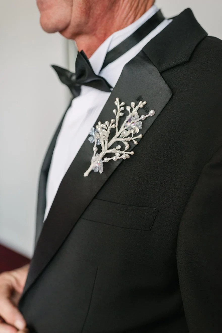“When I saw Mary for the first time on her wedding day, of course, I was blown away. When she gave me a gift box, I was taken aback. When I saw that it was a boutonnière that was made from my wife’s tiara...Well, I get choked up thinking about it now. It is a masterpiece. I will use it in the future for the most special occasions.”