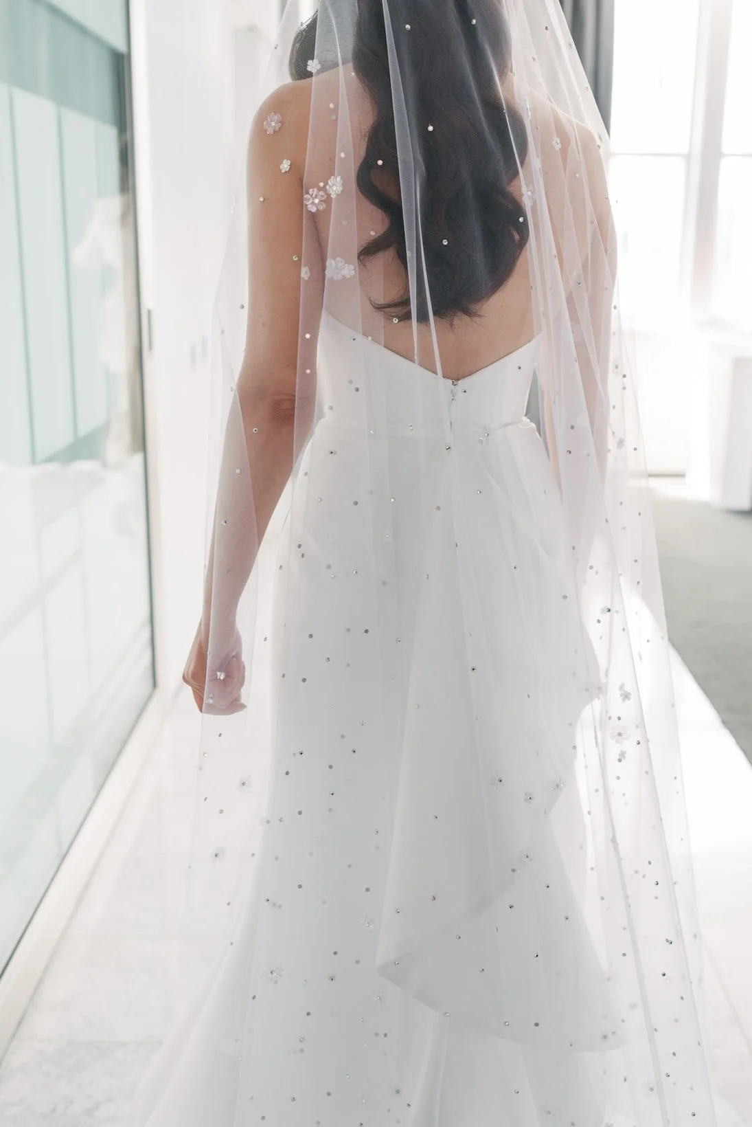 “I fell in love with the veil first. I was obsessed with the little flowers and crystals on it.”