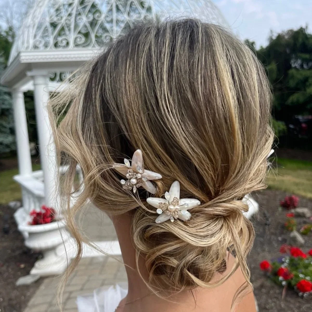 We use the finest crystals, freshwater pearls, silks, and materials to create custom wedding headpieces and bridal accessories specific to your wedding day style. Marie also uses non-traditional elements for custom bridal design in wedding hairpieces, such as sea glass, seashells, starfish, cut glass, and authentic gemstones.